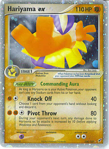 [CFF] Pivot Throw (80) During your opponent's next turn, any damage done to Hariyama ex by attacks is increased by 10 (before applying Weakness and Resistance).