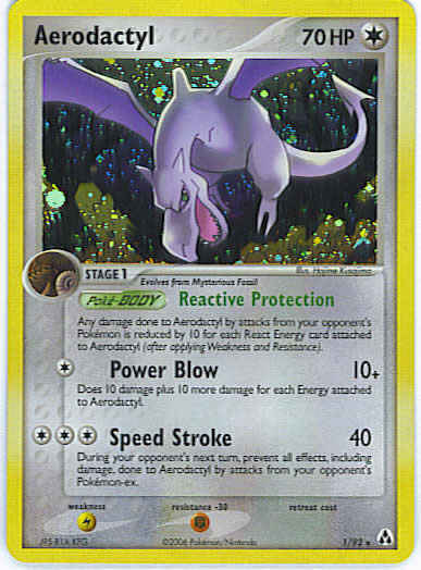 [C] Power Blow (10+) Does 10 damage plus 10 more damage for each Energy attached to Aerodactyl.