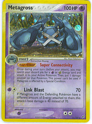 Evne [CP] Link Blast (70) If Metagross and the Defending Pokemon have a different amount of Energy attached to them, this attack's base damage is 40 instead of 70.