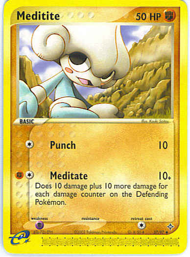 Type | Fighting | Pokemon serie | Dragon | Stadie | Basic | HP | 50 | Sjældenhed | Uncommon | Tilbagetrækning | 1 | Svaghed | P | Kortnummer | 37 | Evne | [C] Punch (10) [CF] Meditate (10+) Does 10 damage plus 10 more damage for each damage counter on the Defending Pokemon. | Evne2 | [C] Punch (10) [CF] Meditate (10+) Does 10 damage plus 10 more damage for each damage counter on the Defending Pokemon. | Kunstner | Kouki Saitou |