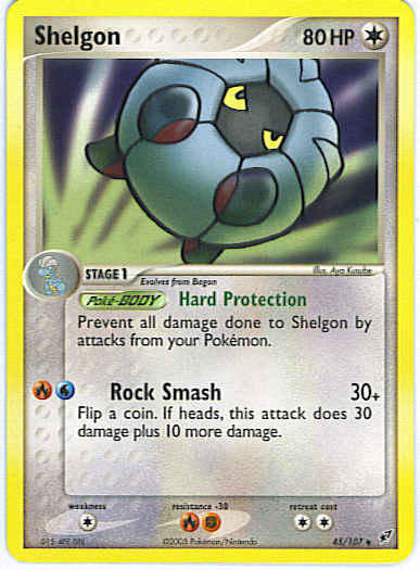 Type | Colorless | Pokemon serie | Deoxys | Stadie | Stage 1 | HP | 80 | Sjældenhed | Uncommon | Tilbagetrækning | 2 | Modstand | FR | Svaghed | C | Kortnummer | 45 | Evne | [RW] Rock Smash (30+) Flip a coin. If heads, this attack does 30 damage plus 10 more. | Evne2 | [RW] Rock Smash (30+) Flip a coin. If heads, this attack does 30 damage plus 10 more. | Kunstner | Aya Kusube |
