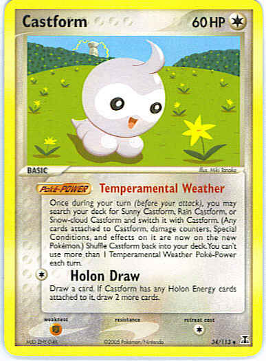 Evne on it are now on the new Pokemon.) Shuffle Castform back into your deck. You can't use more than 1 Temperamental Weather Poke-Power each turn. (Poke-POWER)