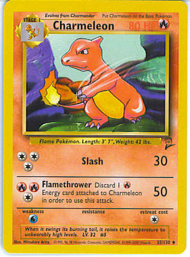 Type | Fire | Pokemon serie | Base Set 2 | Stadie | Stage 1 | HP | 80 | Sjældenhed | Uncommon | Tilbagetrækning | 1 | Svaghed | W | Kortnummer | 35 | Evne |