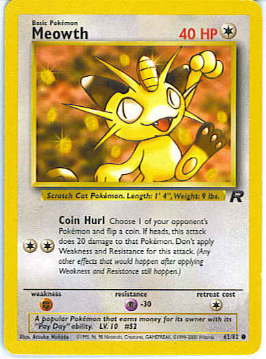 Type | Colorless | Pokemon serie | Team Rocket | Stadie | Basic | HP | 40 | Sjældenhed | Common | Tilbagetrækning | 1 | Modstand | P | Svaghed | F | Kortnummer | 62 | Evne |