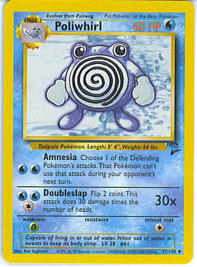 Type | Water | Pokemon serie | Base Set 2 | Stadie | Stage 1 | HP | 60 | Sjældenhed | Uncommon | Tilbagetrækning | 1 | Svaghed | G | Kortnummer | 57 | Evne |