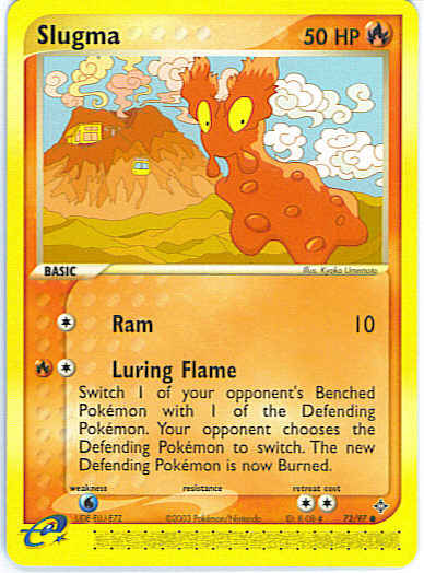 Type | Fire | Pokemon serie | Dragon | Stadie | Basic | HP | 50 | Sjældenhed | Common | Tilbagetrækning | 2 | Svaghed | W | Kortnummer | 72 | Evne | [C] Ram (10) [CR] Luring Flame - Switch 1 of your opponent's Benched Pokemon with 1 of the Defending Pokemon. Your opponent chooses the Defending Pokemon to switch. The new Defending Pokemon is now Burned. | Evne2 | [C] Ram (10) [CR] Luring Flame - Switch 1 of your opponent's Benched Pokemon with 1 of the Defending Pokemon. Your opponent chooses the Defending Pokemon to switch. The new Defending Pokemon is now Burned. | Kunstner | Kyoko Umemoto |