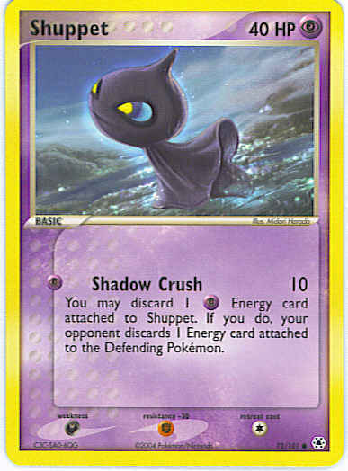 Evne[P] Shadow Crush (10) You may discard 1 P Energy card attached to Shuppet. If you do, your opponent discards 1 Energy card attached to the Defending Pokemon.