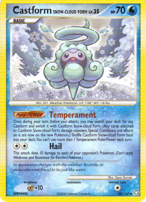 Evne on it are now on the new Pokemon.) Shuffle Castform Snow-cloud Form back into your deck. You can't use more than 1 Temperament Poke-Power each turn. (Poke-POWER)
