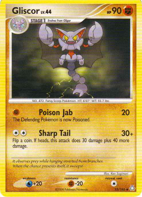 Type | Fighting | Pokemon serie | Legends Awakened | Stadie | Stage 1 | HP | 90.0 | Sjældenhed | Uncommon | Tilbagetrækning | 1.0 | Modstand | F-20 | Svaghed | W+20 | Kortnummer | 55 | Evne | [F] Poison Jab (20) The Defending Pokemon is now Poisoned. [CC] Sharp Tail (30+) Flip a coin. If heads, this attack does 30 damage plus 40 more damage.