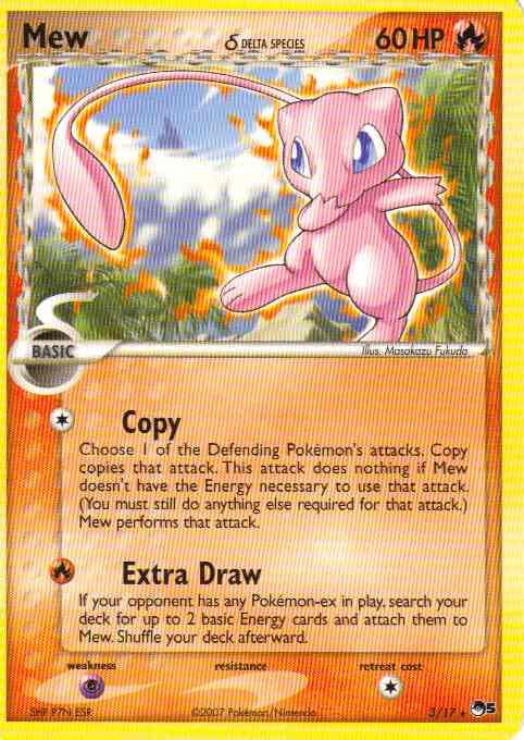 [R] Extra Draw - If your opponent has any Pokemon-ex in play, search your deck for up to 2 basic Energy cards and attach them to Mew. Shuffle your deck afterward.