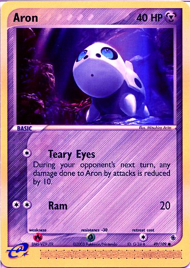 Evne[C] Teary Eyes - During your opponent's next turn, any damage done to Aron is reduced by 10.