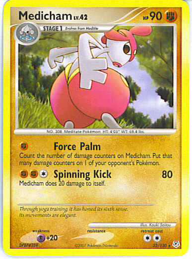 Evne [F] Force Palm - Count the number of damage counters on Medicham. Put that many damage counters on 1 of your opponent's Pokemon.