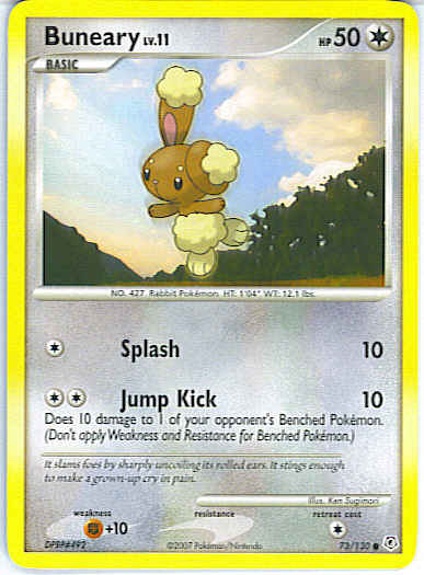 Type | Colorless | Pokemon serie | Diamond and Pearl | Stadie | Basic | HP | 50 | Sjældenhed | Common | Tilbagetrækning | 1 | Svaghed | F+10 | Kortnummer | 73 | Evne |