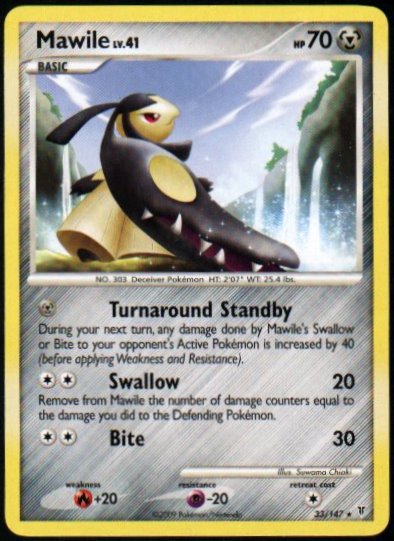 Evne [M] Turnaround Standby - During your next turn, any damage done by Mawile's Swallow or Bite to your opponent's Active Pokemon is increased by 40 (before applying Weakness and Resistance).