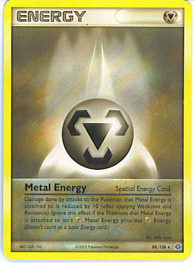 Damage done by attacks to the Pokemon that Metal Energy is attached to is reduced by 10 (after applying Weakness and Resistance.) Ignore this effect if the Pokemon that Metal Energy is attached to isn't M. Metal Energy provides M Energy. (Doesn't count as a basic Energy card.)