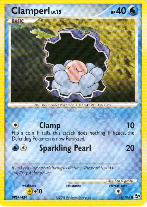 [C] Clamp (10) Flip a coin. If tails, this attack does nothing. If heads, the Defending Pokemon is now Paralyzed.