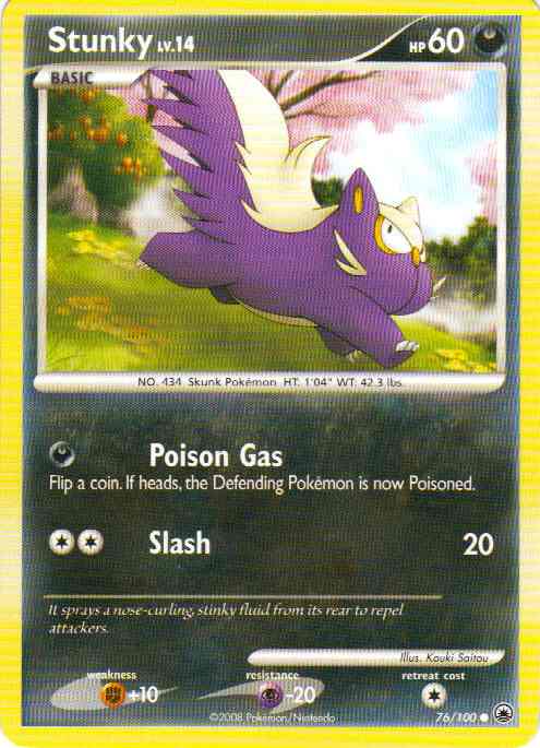 Type | Darkness | Pokemon serie | Majestic Dawn | Stadie | Basic | HP | 60.0 | Sjældenhed | Common | Tilbagetrækning | 1.0 | Modstand | P-20 | Svaghed | F+10 | Kortnummer | 76 | Evne |