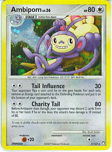 [CC] Tail Influence (30) Your opponent flips a coin until he or she gets heads. For each tails, remove an Energy from the Defending Pokemon and put it at the bottom of your opponent's deck.