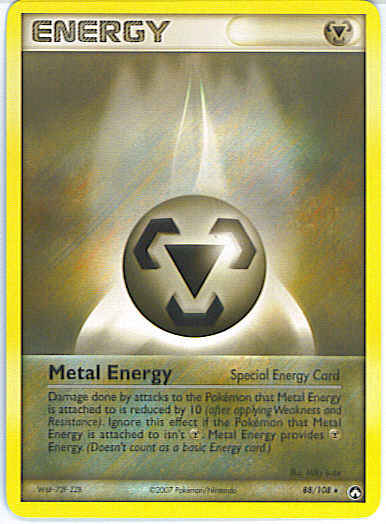 Damage done by attacks to the Pokemon that Metal Energy is attached to is reduced by 10 (after applying Weakness and Resistance). Ignore this effect if the Pokemon that Metal Energy is attached to isn't M. Metal Energy provides M Energy. (Doesn't count as a basic Energy card.)
