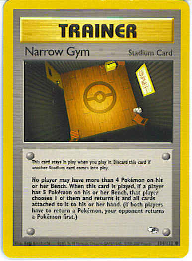 Evne2 No player may have more than 4 Pokemon on his or her Bench. When this card is played, if a player has 5 Pokemon on his or her Bench, that player chooses 1 of them and returns it and all cards attached to it to his or her hand. (If both players have to return a Pokemon, your opponent returns a Pokemon first.)