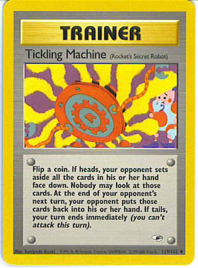 Evne Flip a coin. If heads, your opponent sets aside all the cards in his or her hand face down. Nobody may look at those cards. At the end of your opponent's next turn, your opponent puts those cards back into his or her hand. If tails, your turn ends immediately (you can't attack this turn).