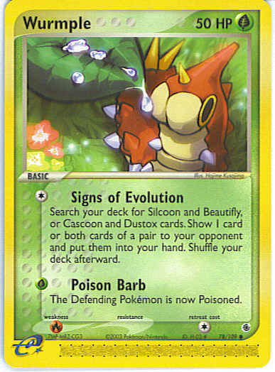 Evne2[C] Signs of Evolution - Search your deck for Silcoon and Beautifly, or Cascoon and Dustox cards. Show 1 card or both cards of a pair to your opponent and put them into your hand. Shuffle your deck afterward.