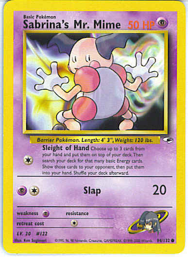 Type | Psychic | Pokemon serie | Gym Heroes | Stadie | Basic | HP | 50 | Sjældenhed | Common | Tilbagetrækning | 1 | Svaghed | P | Kortnummer | 94 | Evne |