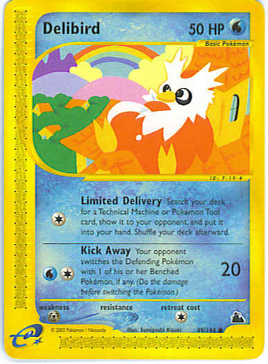 Evne2[C] Limited Delivery - Search your deck for a Technical Machine or Pokemon Tool card show it to your opponent, and put it into your hand. Shuffle your deck afterward.