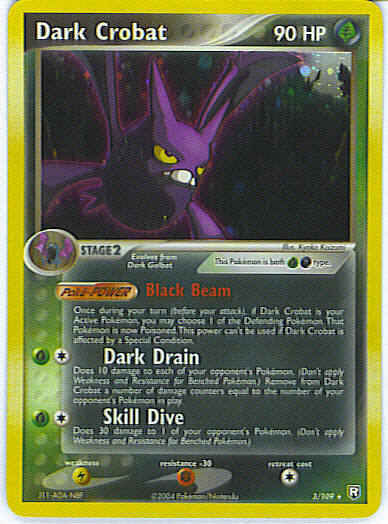[CG] Dark Drain - Does 10 damage to each of your opponent's Pokemon. (Don't apply Weakness and Resistance for Benched Pokemon.) Remove from Dark Crobat a number of damage counters equal to the number of your opponent's Pokemon in play.