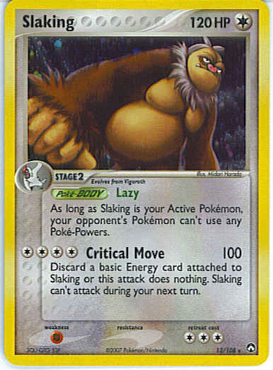 Evne [CCCC] Critical Move (100) Discard a Basic Energy card attached to Slaking or this attack does nothing. Slaking can't attack during your next turn.