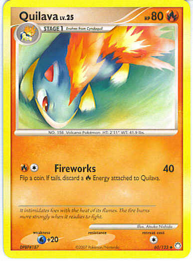 Evne [CR] Fireworks (40) Flip a coin. If tails, discard a R Energy attached to Quilava.