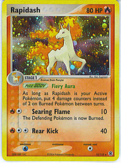 Type | Fire | Pokemon serie | Fire Red Leaf Green | Stadie | Stage 1 | HP | 80 | Sjældenhed | Rare | Tilbagetrækning | 1 | Svaghed | W | Kortnummer | 13 | Evne |