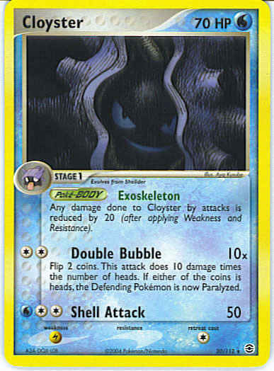 Type | Water | Pokemon serie | Fire Red Leaf Green | Stadie | Stage 1 | HP | 70 | Sjældenhed | Rare | Tilbagetrækning | 1 | Svaghed | L | Kortnummer | 20 | Evne | [CC] Double Bubble (10x) Flip 2 coins. This attack does 10 damage times the number of heads. If either of the coins is heads, the Defending Pokemon is now Paralyzed. [CCW] Shell Attack (50) | Evne2 | [CC] Double Bubble (10x) Flip 2 coins. This attack does 10 damage times the number of heads. If either of the coins is heads, the Defending Pokemon is now Paralyzed. [CCW] Shell Attack (50) | Kunstner | Aya Kusube |