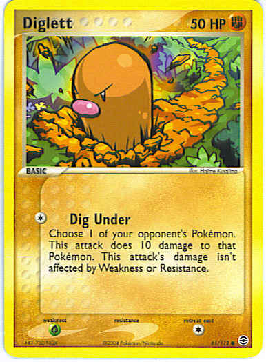 Evne2[C] Dig Under - Choose 1 of your opponent's Pokemon. This attack does 10 damage to that Pokemon. This attack's damage isn't affected by Weakness or Resistance.