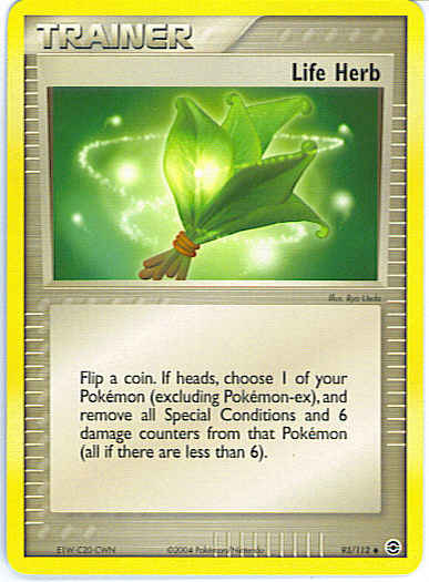 Evne Flip a coin. If heads, choose 1 of your Pokemon (excluding Pokemon-ex) and remove all Special Conditions and 6 damage counters from that Pokemon (all if there are less than 6).
