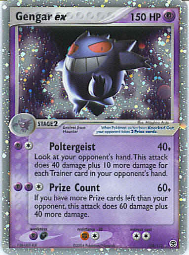 Type | Psychic | Pokemon serie | Fire Red Leaf Green | Stadie | Stage 2 | HP | 150 | Sjældenhed | Ultra-Rare | Tilbagetrækning | 2 | Modstand | FC | Svaghed | DP | Kortnummer | 108 | Evne | [CP] Poltergeist (40+) Look at your opponent's hand. This attack does 40 damage plus 10 more damage for each Trainer card in your opponent's hand. [CPP] Prize Count (60+) If you have more Prizes left than your opponent, this attack does 60 damage plus 40 more damage. | Evne2 | [CP] Poltergeist (40+) Look at your opponent's hand. This attack does 40 damage plus 10 more damage for each Trainer card in your opponent's hand. [CPP] Prize Count (60+) If you have more Prizes left than your opponent, this attack does 60 damage plus 40 more damage. | Kunstner | Mitsuhiro Arita |