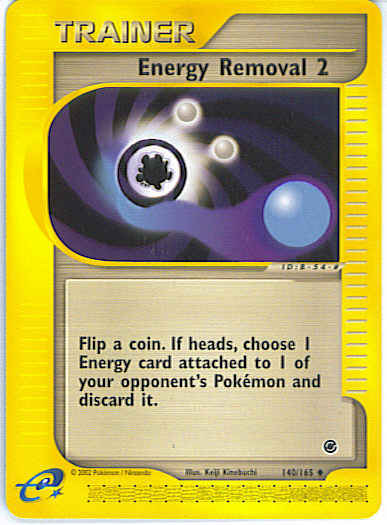 Flip a coin. If heads, chose 1 Energy card attached to 1 of your opponent's Pokemon and discard it.