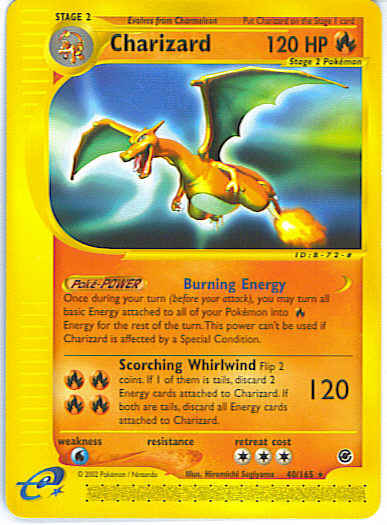 Type | Fire | Pokemon serie | Expedition | Stadie | Stage 2 | HP | 120 | Sjældenhed | Rare | Tilbagetrækning | 3 | Svaghed | W | Kortnummer | 40 | Evne |