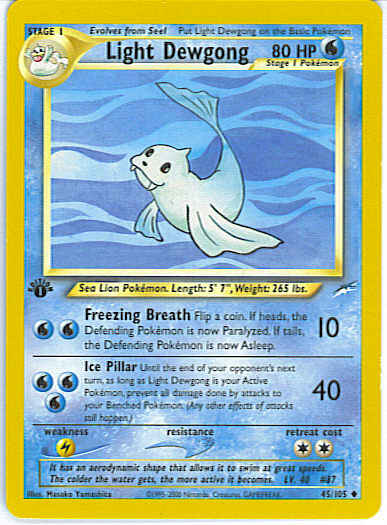 Type | Water | Pokemon serie | Neo Destiny | Stadie | Stage 1 | HP | 80 | Sjældenhed | Uncommon | Tilbagetrækning | 2 | Svaghed | L | Kortnummer | 45 | Evne |