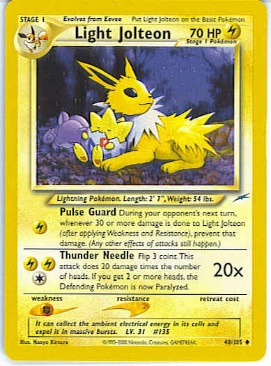 Type | Lightning | Pokemon serie | Neo Destiny | Stadie | Stage 1 | HP | 70 | Sjældenhed | Uncommon | Svaghed | F | Kortnummer | 48 | Evne |