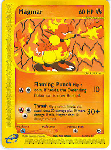 [CCR] Thrash (30+) Flip a coin. If heads, this attack does 30 damage plus 10 more damage. If tails, Magmar does 10 damage to itself.