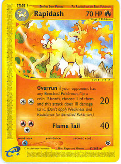 Type | Fire | Pokemon serie | Expedition | Stadie | Stage 1 | HP | 70 | Sjældenhed | Rare | Svaghed | W | Kortnummer | 62 | Evne |