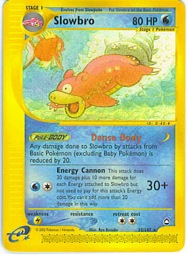 Evne2[CW] Energy Cannon (30+) Does 30 damage plus 10 damage for each Energy attached to Slowbro but not used to pay for this attack's Energy cost. You can't add more than 20 damage in this way.