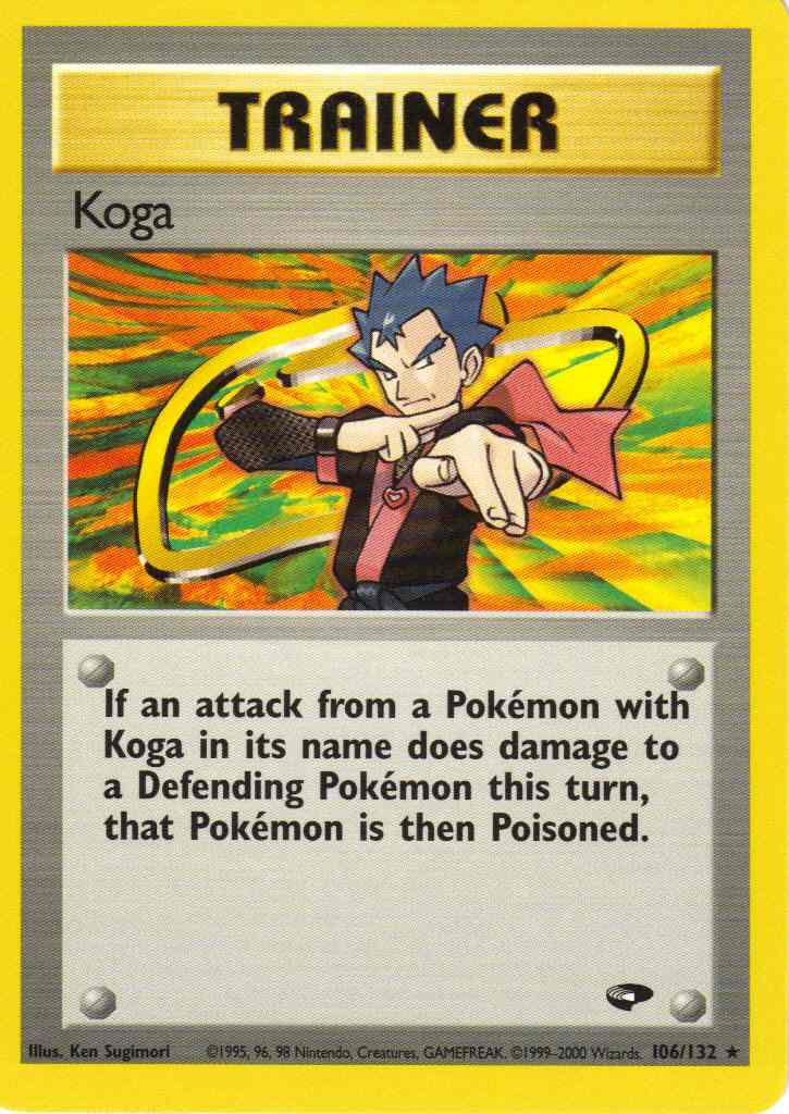 If an attack from a Pokemon with Koga in its name does damage to a Defending Pokemon this turn, that Pokemon is then Poisoned.