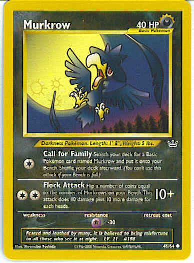 [C] Call for Family - Search your deck for a card named Murkrow and put it onto your Bench. Shuffle your deck afterward. (You can't use this attack if your Bench is full.)