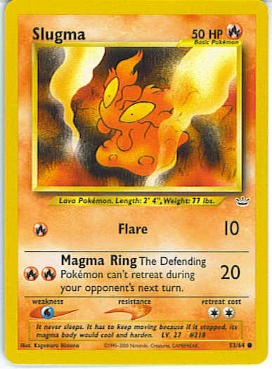 Type | Fire | Pokemon serie | Neo Revelation | Stadie | Basic | HP | 50 | Sjældenhed | Common | Tilbagetrækning | 2 | Svaghed | W | Kortnummer | 53 | Evne |
