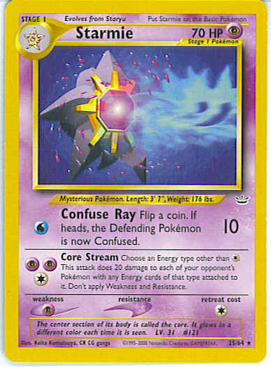 Type | Psychic | Pokemon serie | Neo Revelation | Stadie | Stage 1 | HP | 70 | Sjældenhed | Rare | Tilbagetrækning | 1 | Svaghed | P | Kortnummer | 25 | Evne |