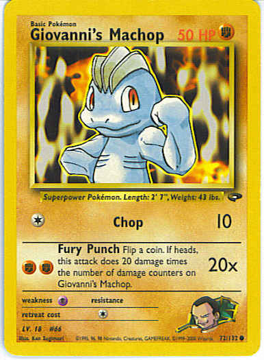 [FF] Fury Punch (20x) Flip a coin. If heads, this attack does 20 damage times the number of damage counters on Giovanni's Machop.
