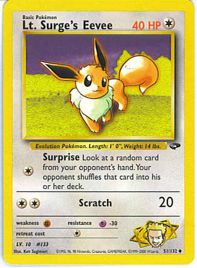 Type | Colorless | Pokemon serie | Gym Challenge | Stadie | Basic | HP | 40 | Sjældenhed | Uncommon | Tilbagetrækning | 1 | Modstand | P | Svaghed | F | Kortnummer | 51 | Evne |