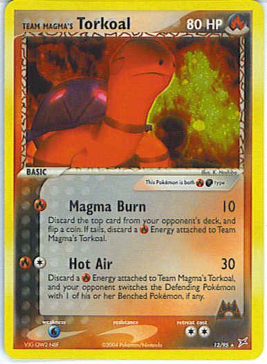 [CR] Hot Air (30) Discard a R Energy attached to Team Magma's Torkoal, and your opponent switches the Defending Pokemon with 1 of his or her Benched Pokemon, if any.